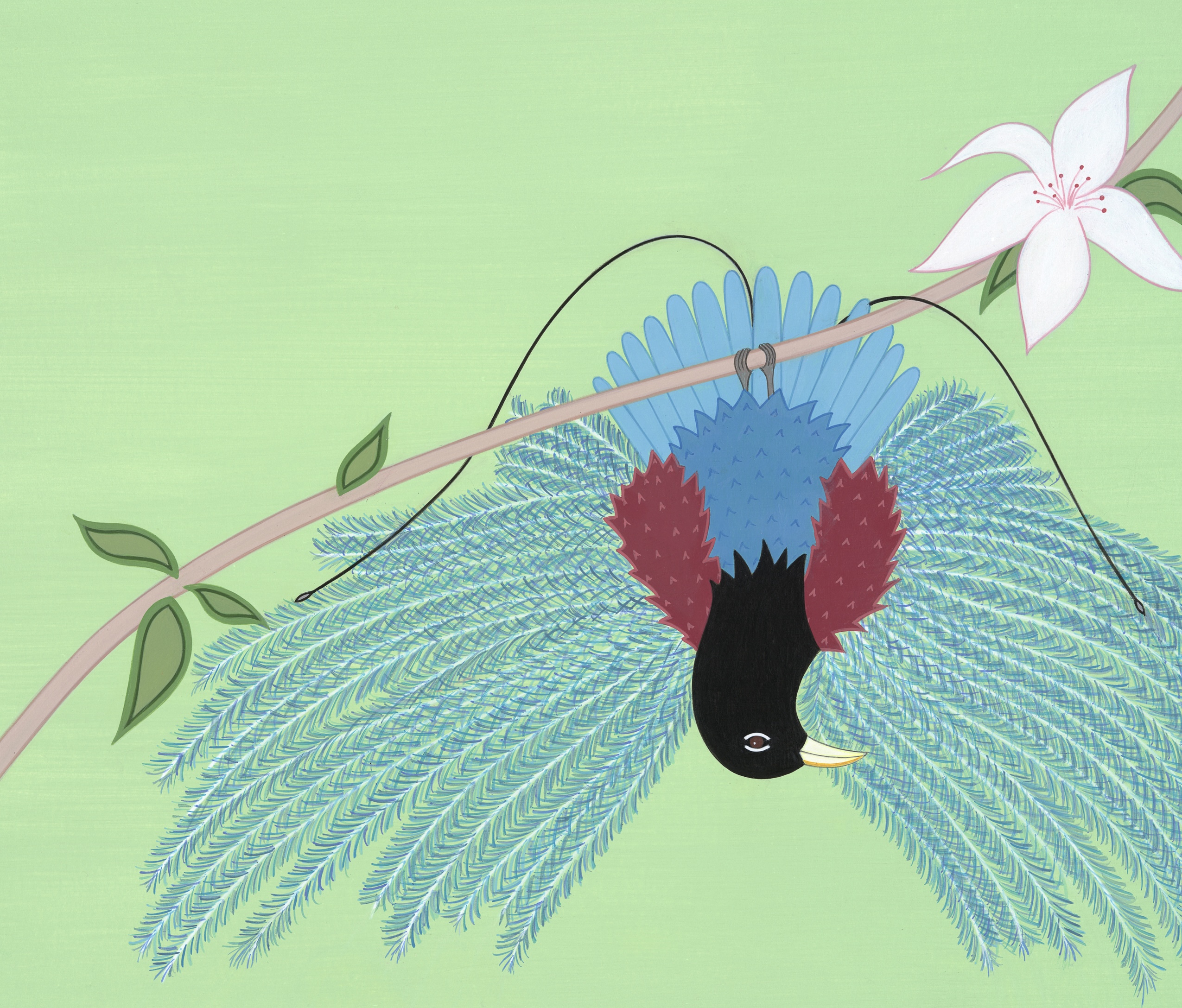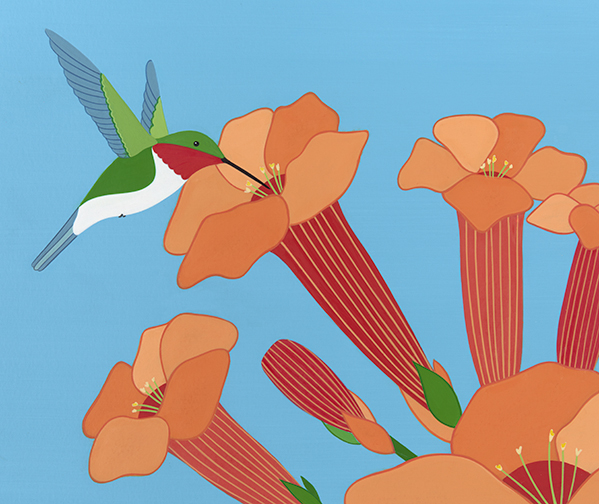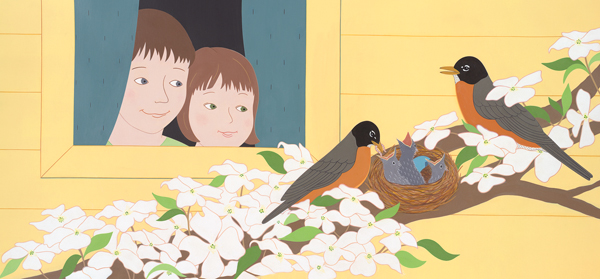 Each of my paintings is a one-of-a-kind, signed and matted original, created in acrylic on paper and rich in pattern and intricate detail. The paintings were created over many years and reflect a long engagement with the natural world, rendered with detailed patterning and careful observation. All of these works are featured in my award-winning picture books. While rooted in reality, the work carries a quiet sense of narrative and charm.